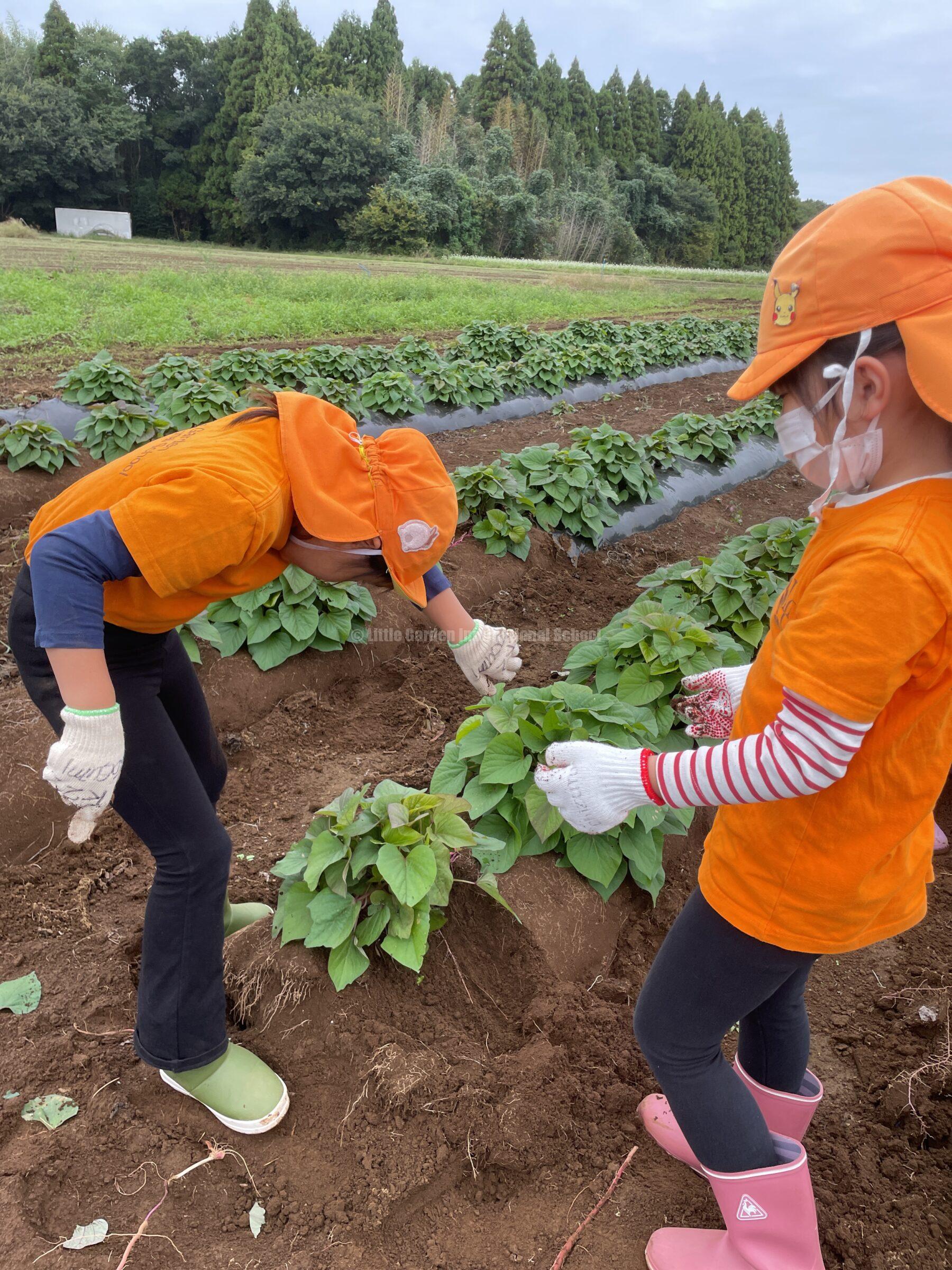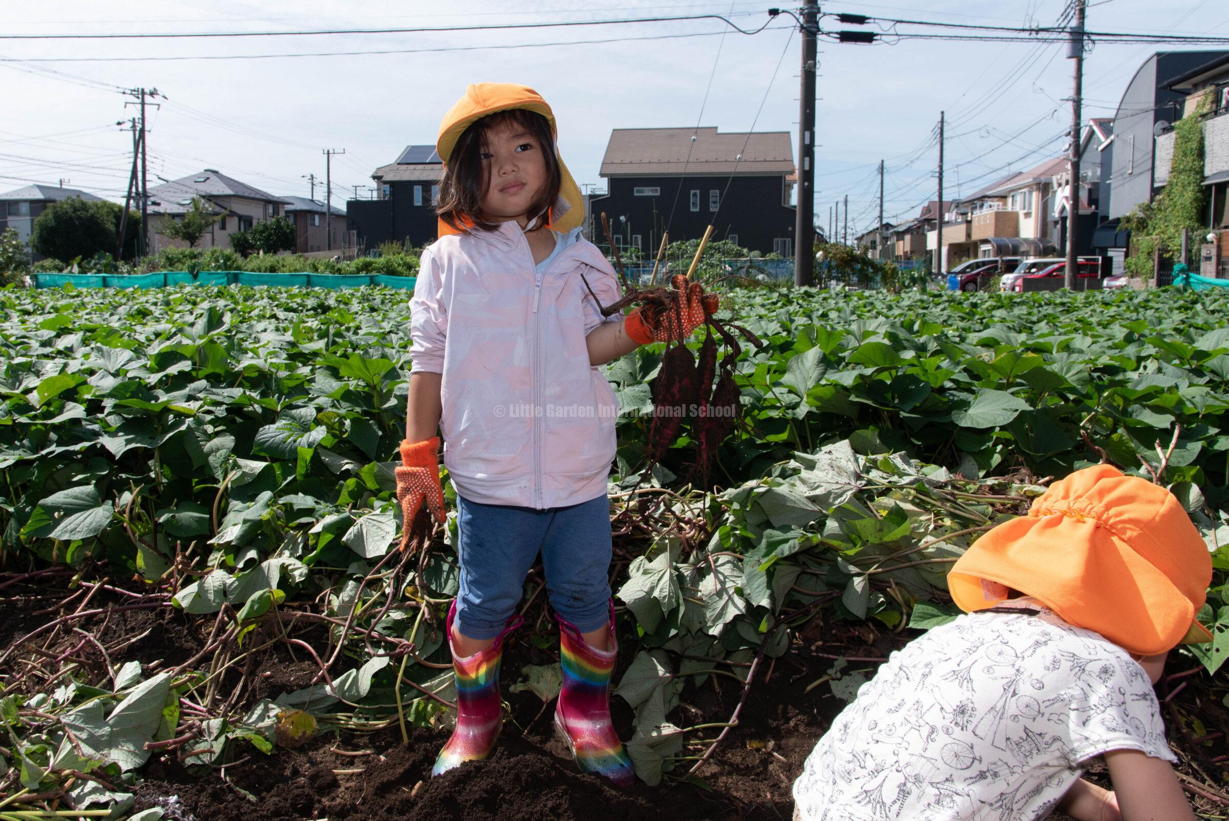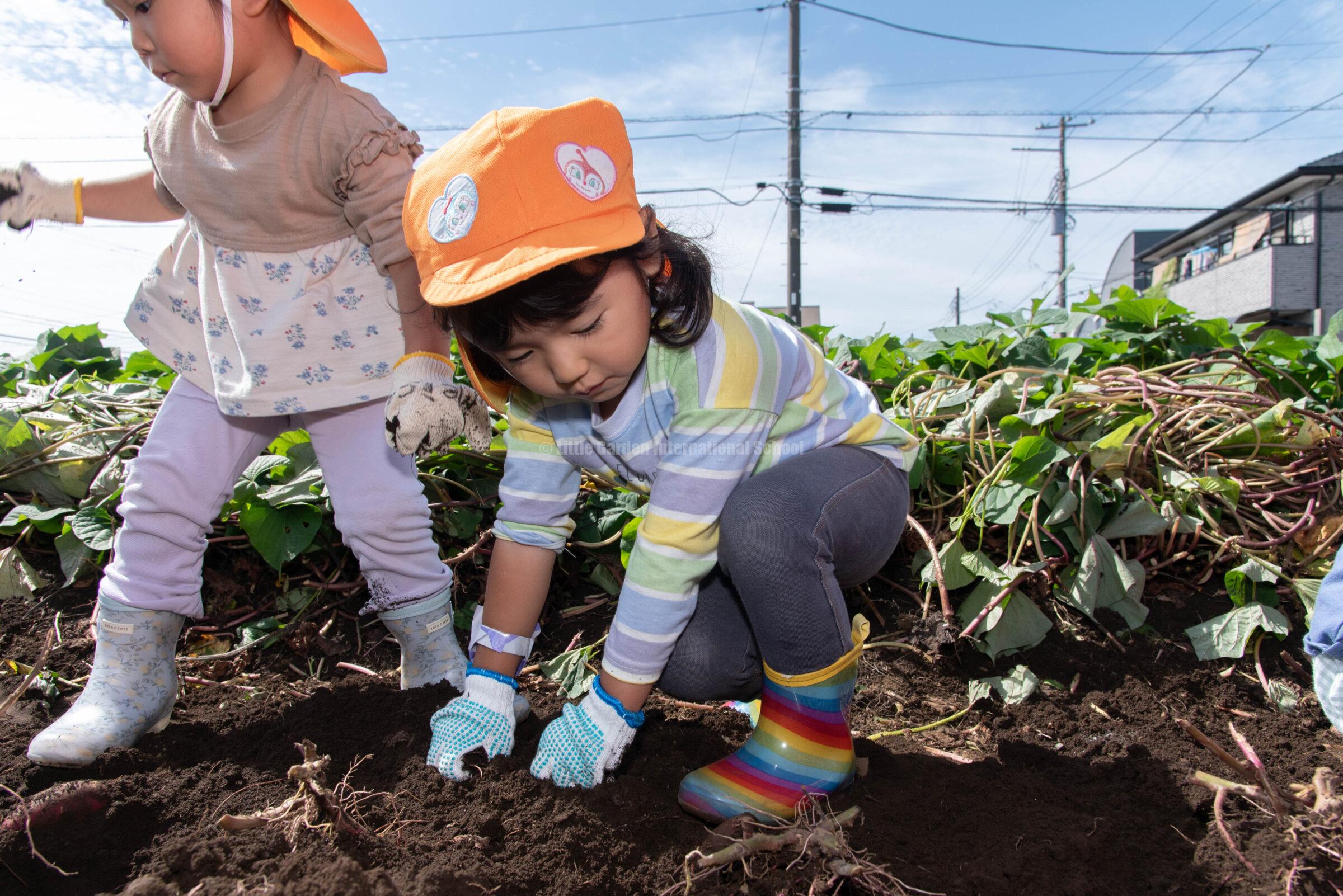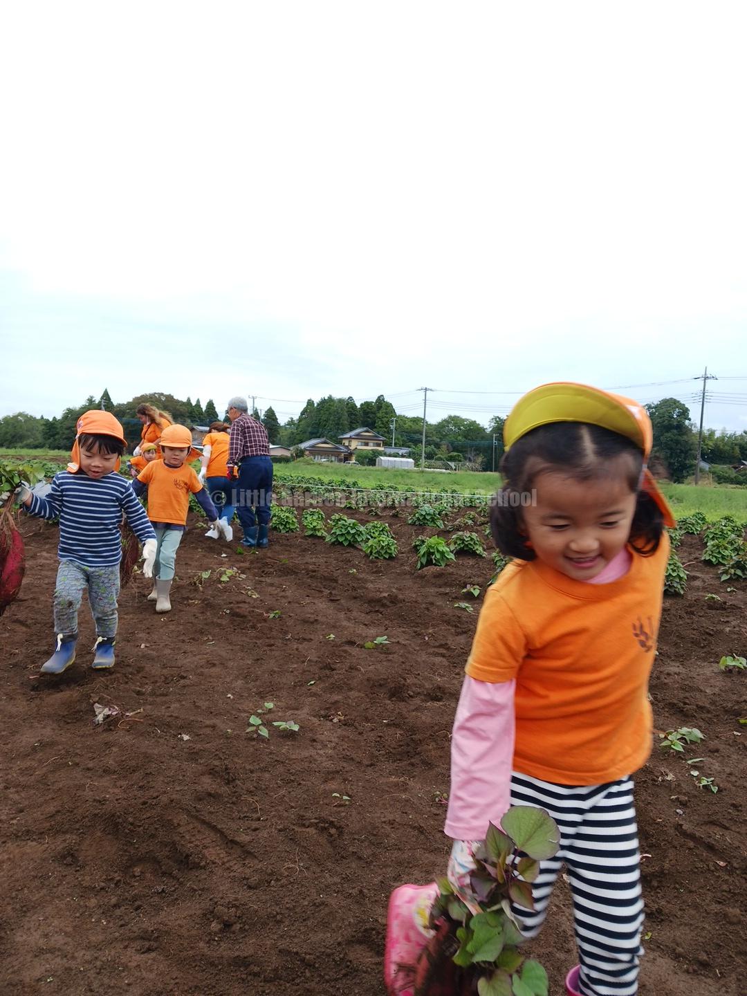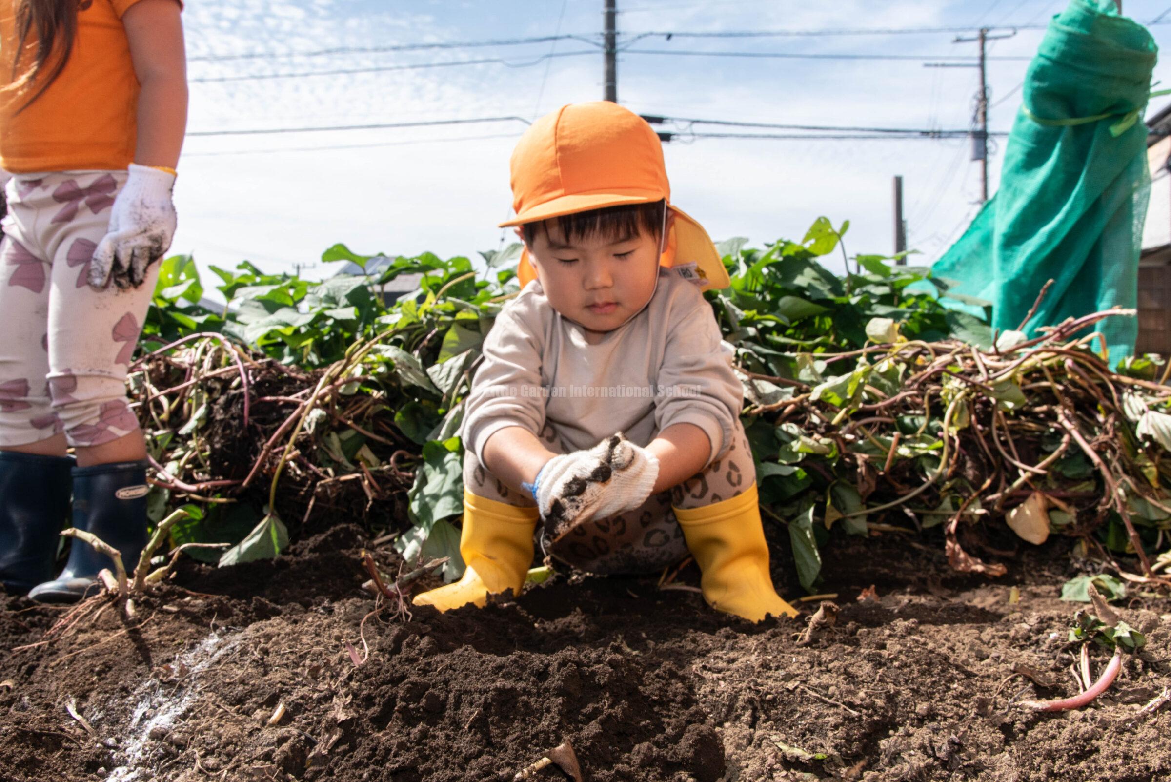 Preschool、K1、K2クラスのお友だちは、自社農園のLCファームで芋ほりを楽しみました。